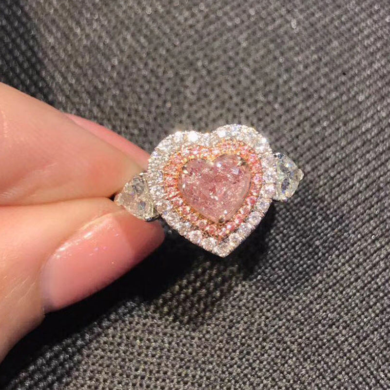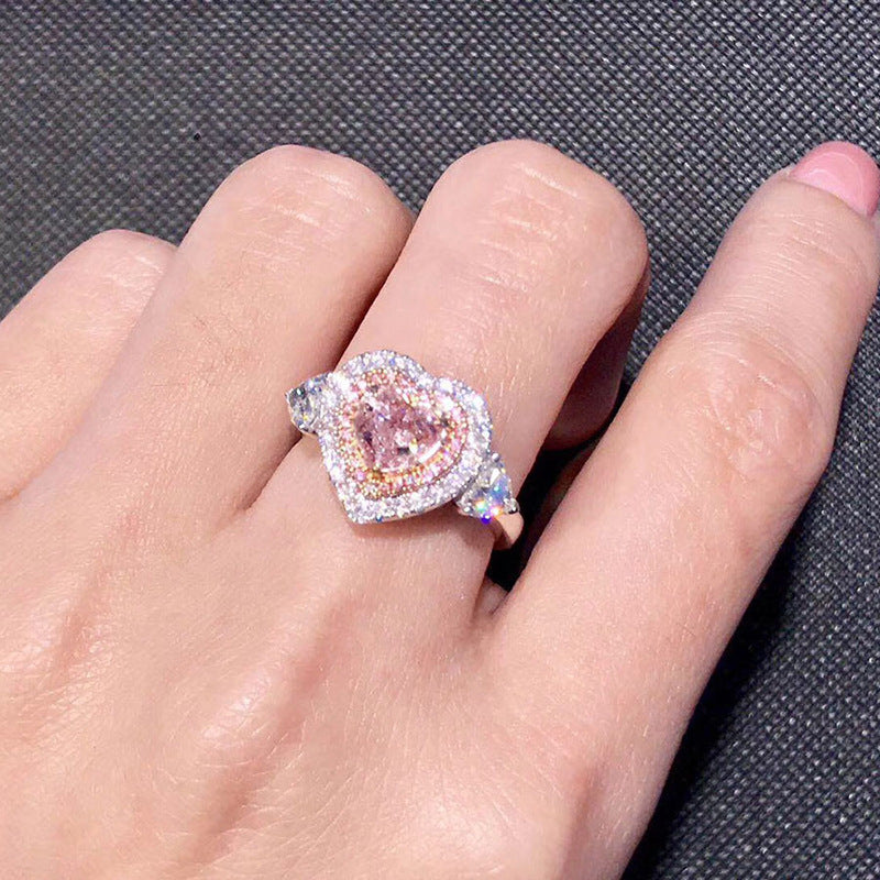 Einfacher herzförmiger Silberring mit hohem Kohlenstoffgehalt und Zirkonoxid
