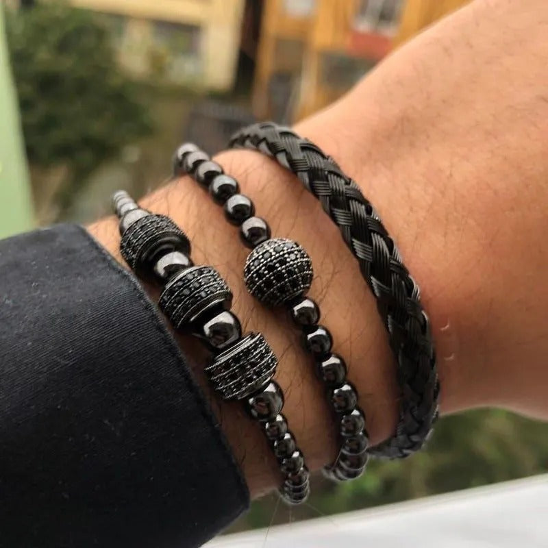 Bracelet tissé en Zircon incrusté de perles de cuivre de 8MM