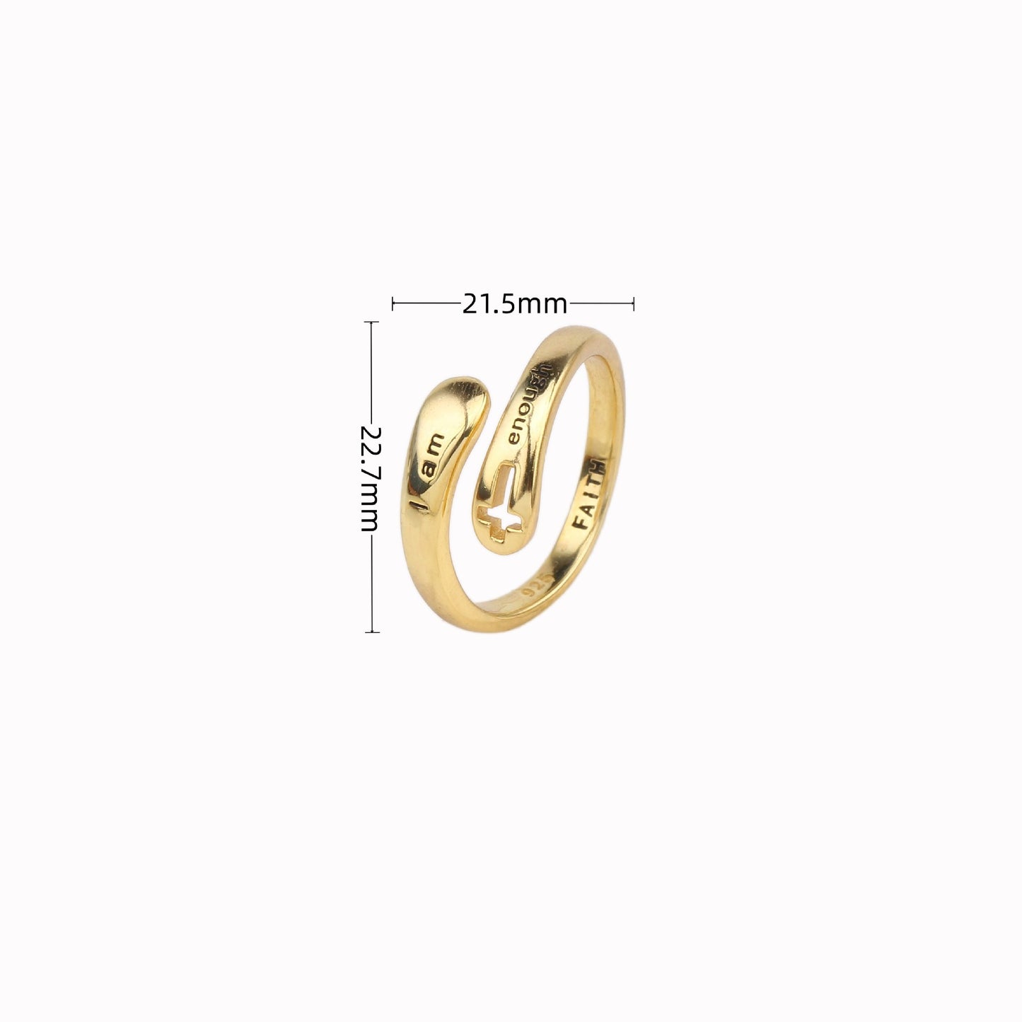 “I am enough Faith” Hollow Cross Adjustable Silver Ring