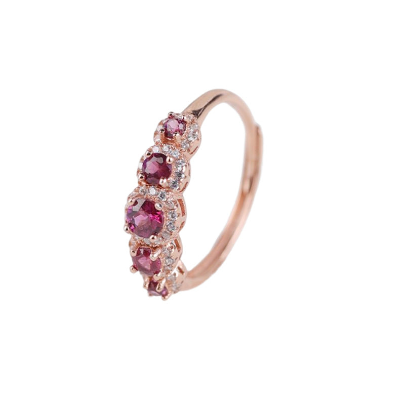 Purple Tooth Garnet Adjustable Open Silver Ring